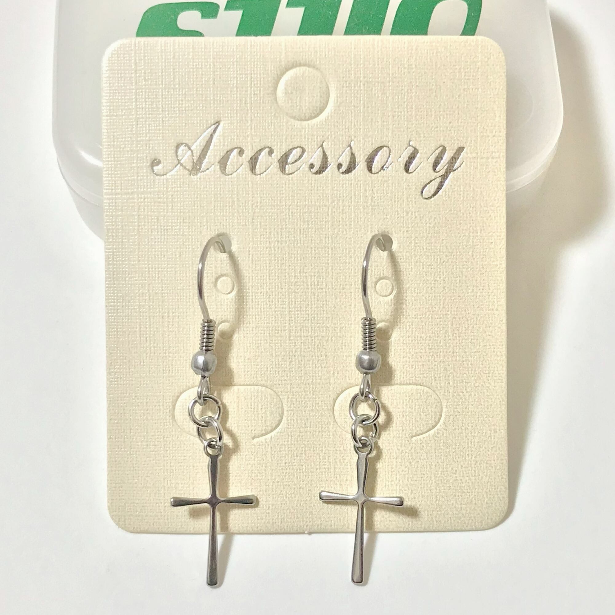 クロスチャームのステンレスフックピアスです。